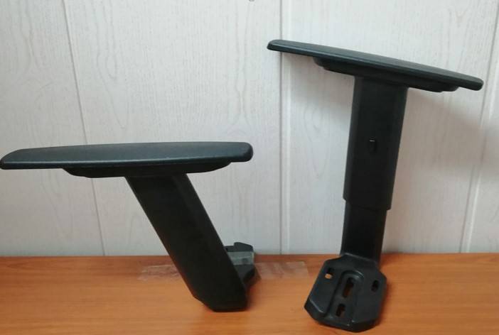 Пара т-образных пластиковых подлокотников для офисного кресла.