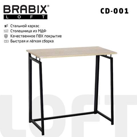 ПодробнееСтол на металлокаркасе BRABIX LOFT CD-002, 1000х500х750 мм, складной, цвет дуб натуральный, 641214