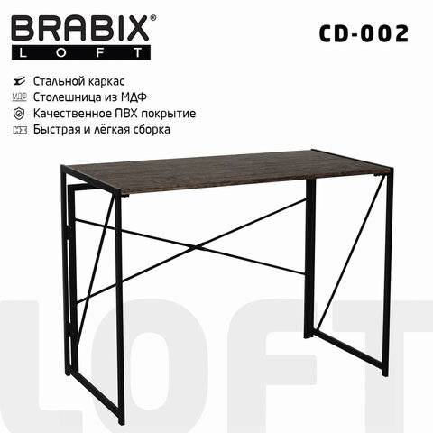 ПодробнееСтол на металлокаркасе BRABIX LOFT CD-002, 1000х500х750 мм, складной, цвет дуб антик, 641213